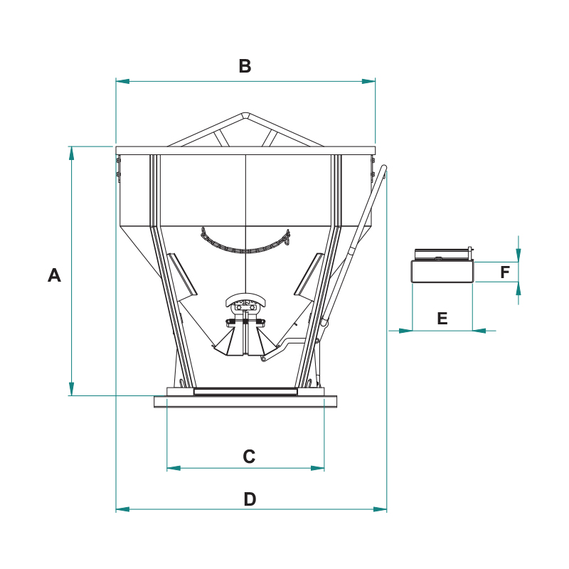 Benna conica per calcestruzzo a scarico centrale con base inforcabile
