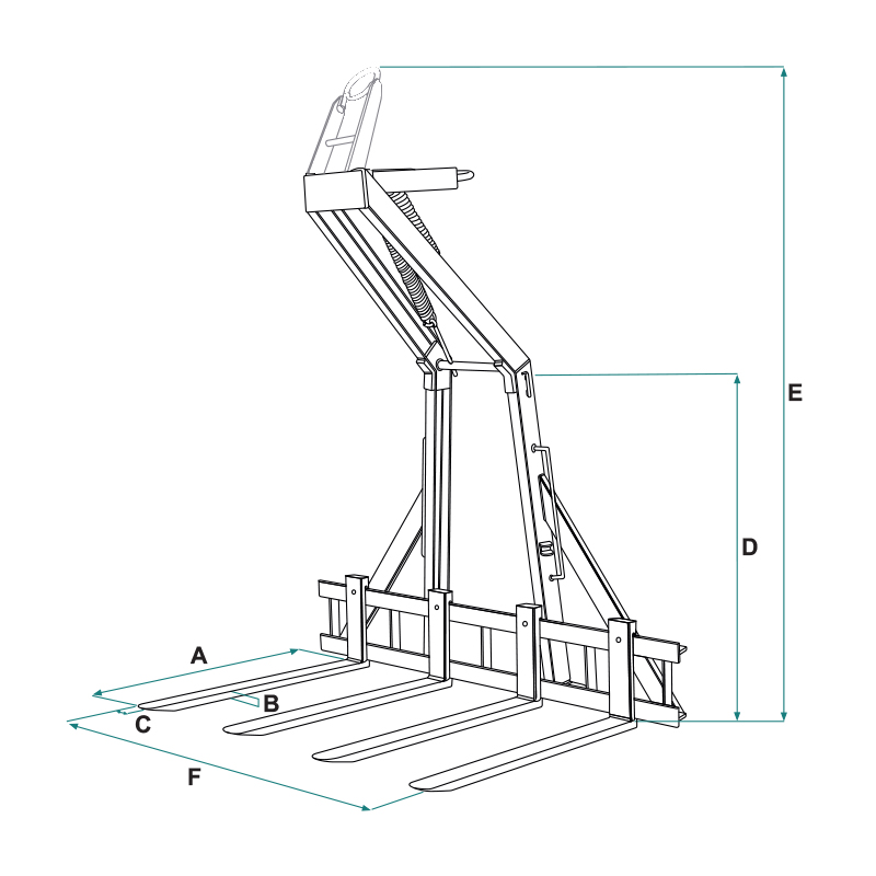 La forca è progettata con quattro denti regolabili, fornendo la flessibilità necessaria per il sollevamento di due pallet affiancati contemporaneamente. Il bilanciamento automatico a molla consente di bilanciare il carico in modo veloce e diretto sia con autogru che con gru da cantiere.